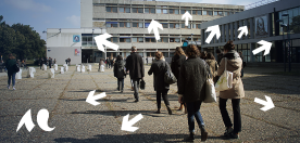 Un petit groupe d'étudiants inscrits en études japonais présente à voix haute leurs écrits en langue française sur un Japon imaginaire ou réel à partir d'exercices à la manière de l'Oulipo sur la thématique des couleurs.
